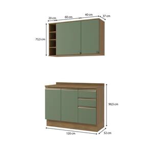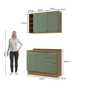 Transforme sua cozinha com toda a beleza e praticidade do Conjunto CB1387 da Cozinha Celeste Kappesberg. Produzido 100% em MDF de 15mm, o que garante mais robustez, firmeza e qualidade, além de um acabamento perfeito. São 230cm de altura, 120cm de largura e 52cm de profundidade no balcão e 37cm nos aéreos. A caixaria, em pintura touch na cor nogueira, conta com a textura dos veios da madeira, enquanto as frentes são na cor verde oliva, com acabamento fosco.