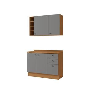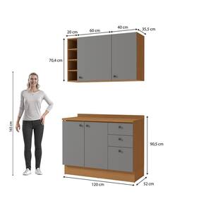 Acabamento: 100% BP / Pintura Touch | Cor: Canela/Cinza Sagrado | Corrediças: Telescópicas | Dobradiça: Com Amortecimento | Garantia: 3 meses para defeito de fabricação | Matéria-prima: MDP / MDP BP | Peso suportado por cada gaveta: 6 Kg | Peso suportado por cada prateleira: 7 kg | Puxadores: Metálicos | Quantidade de gavetas: 3 | Quantidade de portas: 1 | Quantidade de prateleiras: 1 / 3 | Sistema de montagem: Parafuso Philips | Tipo de porta: Bater | Montagem: Necessita montagem | Duração da garantia: 3 meses | Tipo de garantia: Garantia do fabricante | Tipo de móveis de cozinha: Combo de móveis de cozinha | Requer montagem: Sim