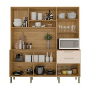 A cozinha Italia, além de trazer todo o conceito de amplitude e organização para o ambiente, conta com uma estrutura 100% em MDF, garantindo maior resistência e durabilidade. Seu design inteligente com amplas repartições e nichos facilita o armazenamento de objetos e itens diversos, enquanto o espaço dedicado ao forno ou micro-ondas agrega praticidade. O acabamento com pintura fosca e textura sensível ao toque não só valoriza o visual, mas também respeita o meio ambiente.