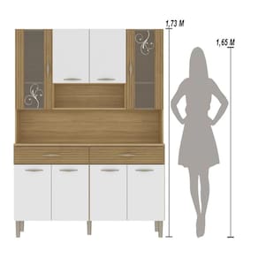 A Cozinha Golden Plus é produzida inteira em MDF de 12mm, oferecendo excelente resistência e durabilidade. Conta com oito portas, sendo uma porta superior com vidro, dobradiças e corrediças 100% metálicas, garantindo maior qualidade e praticidade. Além disso, possui uma ampla gaveta, puxador ergonômico em plástico resistente e pés fixos em plástico de alta resistência. Essa Cozinha é ideal para proporcionar funcionalidade e estilo ao seu ambiente.