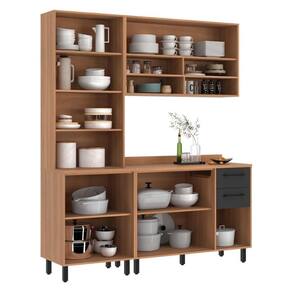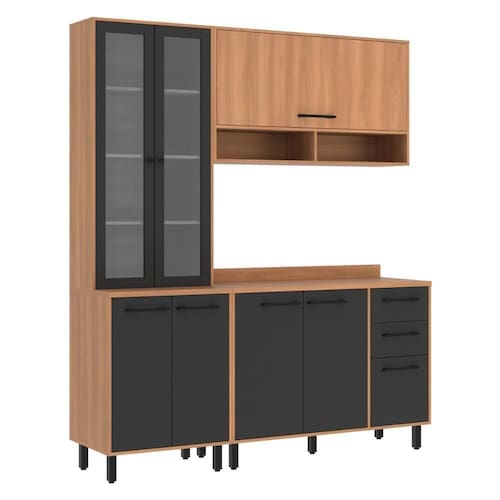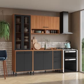 O Armário de Cozinha Compacta Modulada 3 Peças com Balcão Havana Multimóveis CR20331 é perfeito para agregar funcionalidade e estilo no seu lar. É composto por 3 módulos individuais que oferecem liberdade total para dispor do jeito que melhor se encaixarem no ambiente. Produzido em MDP (15mm/tampos 25mm) com acabamento acetinado (cerca de 20% de brilho), garante durabilidade e resistência. Com amplo espaço interno para organização, possui 8 portas e 2 gavetas com corrediças telescópicas, que proporcionam um manuseio suave e silencioso. A porta basculante com pistão constante no armário aéreo permite um manuseio seguro e facilidade na organização dos utensílios de cozinha, enquanto as 2 portas com vidro da cristaleira possibilitam a exposição de suas melhores louças. Além disso, possui balcão com tampo removível que suporta até 30kg e é com pia de 120cm. Para conferir elegância e estabilidade aos módulos, esta linda cozinha acompanha puxadores e pés em PVC com regulagem de altura.