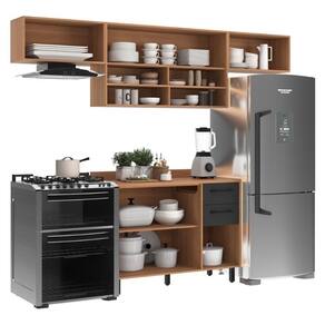 O Armário de Cozinha Compacta Modulada 4 Peças com Balcão Havana Multimóveis CR20327 é perfeito para agregar funcionalidade e estilo no seu lar. É composto por 4 módulos individuais que oferecem liberdade total para dispor do jeito que melhor se encaixarem no ambiente. Produzido em MDP (15mm) com acabamento acetinado (cerca de 20% de brilho), garante durabilidade e resistência. Com amplo espaço interno para organização, possui 6 portas e 2 gavetas com corrediças telescópicas, que proporcionam um manuseio suave e silencioso. As portas basculantes com pistão constantes nos aéreos permitem um manuseio seguro e facilidade na organização dos utensílios de cozinha. Além disso, conta com espaço para fogão/geladeira, balcão com tampo de 25mm removível (suporta até 30kg) e com pia de 120cm. Para conferir elegância e estabilidade aos módulos, esta linda cozinha acompanha puxadores e pés em PVC com regulagem de altura.