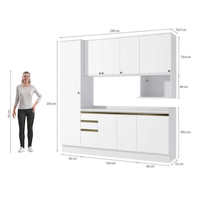 Transforme sua cozinha com toda a beleza e praticidade do Conjunto CB1439 da Cozinha Celeste Kappesberg. Produzido 100% em MDF de 15mm, o que garante mais robustez, firmeza e qualidade, além de um acabamento perfeito. São 2,30m de altura, 2,30m de largura e 52cm de profundidade nos balcões e 37cm nos aéreos, seu acabamento brilho na cor branca é perfeito para a cozinha, garantindo a sensação de mais luminosidade ao ambiente, além de praticidade na limpeza, deixando sua cozinha perfeita.