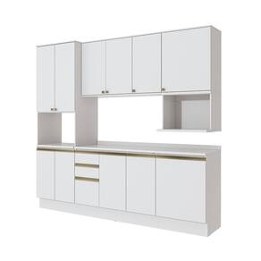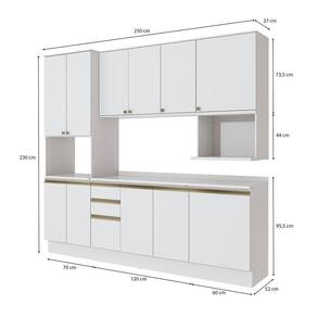 Acabamento: Pintura Brilho | Cor: Branco | Corrediças: Telescópicas | Dobradiça: Com Amortecimento | Garantia: 3 meses para defeito de fabricação | Matéria-prima: MDF / MDP | Peso suportado por cada gaveta: 6 Kg | Peso suportado por cada prateleira: 7 kg | Puxadores: Alumínio / Metálicos / Puxadores de Metal e de Alumínio | Quantidade de gavetas: 3 | Quantidade de portas: 1 / 3 | Quantidade de prateleiras: 1 / 2 / 4 | Sistema de montagem: Parafuso Philips | Tipo de porta: Bater | Duração da garantia: 3 meses | Tipo de garantia: Garantia do fabricante | Montagem: Necessita montagem | Tipo de móveis de cozinha: Combo de móveis de cozinha | Requer montagem: Sim