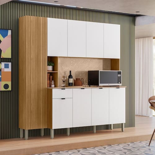 O Armário de Cozinha Pulse alia design contemporâneo com praticidade e resistência. Com 8 portas e 1 gaveta, possui amplo espaço interno para organização dos utensílios. Fabricado em MDP, combina com diferentes estilos de cozinha.