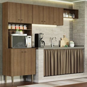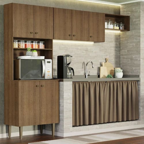 Mais organização no seu quiosque ou área gourmet: espaço ideal para organizar utensílios, louças e eletros, inclusive espaço para forno ou micro-ondas.