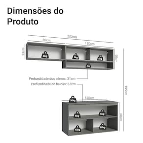 - 52 cm de profundidade no balcão e 31 cm nos aéreos