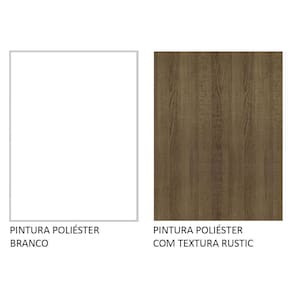 Para completar, o acabamento combina os tons branco, Crema e amadeirado Rustic. É realizado em Pintura Poliéster de alta resistência, um processo ecologicamente correto e que conserva a beleza do móvel por muito mais tempo.