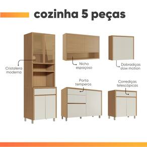 DIFERENCIAIS: Estrutura 100% MDF / Paneleiro com vidro reflecta moderno / Gaveta com organizador de talheres / Nicho com espaço para micro ondas / Corrediças telescópicas 3 estágios / Dobradiças Slow motion / Pistão a gás / Pés reguláveis.