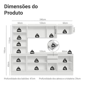 - A cristaleira não acompanha pés nem kit para suspender na parede. Deve ser instalada sobre o balcão e fixada na parede.