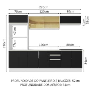 - 52 cm de profundidade nos módulos inferiores e 31 cm nos aéreos