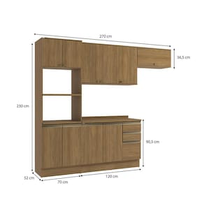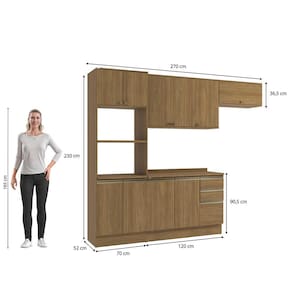 Transforme sua cozinha com toda a beleza e praticidade do Conjunto CB1413 da Cozinha Celeste Kappesberg. Produzido 100% em MDF de 15mm, o que garante mais robustez, firmeza e qualidade, além de um acabamento perfeito. São 2,30m de altura, 2,70m de largura e 52cm de profundidade nos balcões e 37cm nos aéreos, e sua a pintura touch na cor nogueira, com a textura dos veios da madeira, é perfeita para quem busca por um ambiente clássico e aconchegante.