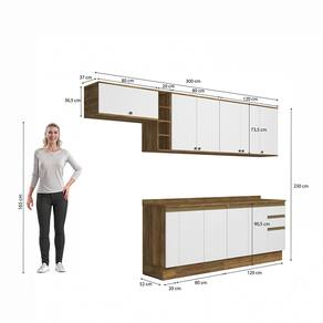 Transforme sua cozinha com toda a beleza e praticidade do Conjunto CB1421 da Cozinha Celeste Kappesberg. Produzido 100% em MDF de 15mm, o que garante mais robustez, firmeza e qualidade, além de um acabamento perfeito. São 2,30m de altura, 3m de largura e 52cm de profundidade nos balcões e 37cm nos aéreos. A caixaria, em pintura touch na cor nogueira, conta com a textura dos veios da madeira, enquanto as frentes são na cor branca, em acabamento brilho.