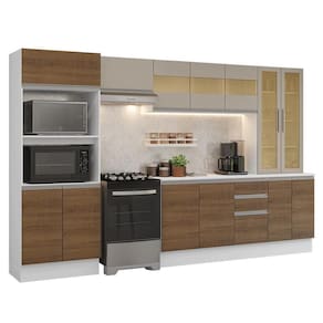 A Cozinha Smart, com 310 cm de largura, é ideal para quem busca mais espaço. Seu diferencial fica por conta da cristaleira com vidro reflex, que adiciona sofisticação e praticidade ao ambiente.