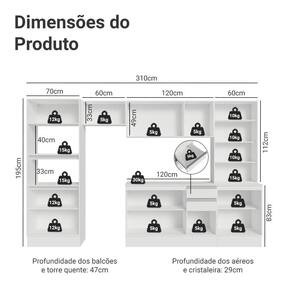 - 29 cm de profundidade dos aéreos e cristaleira