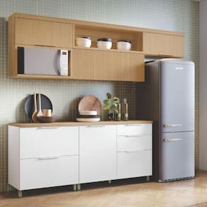 Armário De Cozinha Completa 100% Mdf 5 Portas 4 Gavetas Mariah Nesher Madeirado / Branco