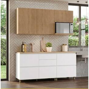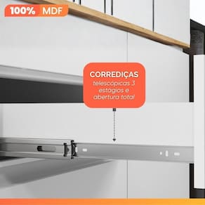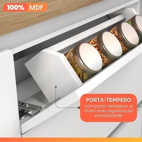 Armário De Cozinha Completa 100% Mdf 7 Portas 5 Gavetas Raissa Nesher Branco / Madeirado O armário de cozinha completa Raissa combina design moderno com alta funcionalidade. Produzido em 100% MDF, oferece durabilidade superior e excelente acabamento. As gavetas com corrediças telescópicas de 3 estágios proporcionam abertura total e deslizamento suave, incluindo uma gaveta porta-tempero e outra com organizador de talheres, garantindo praticidade no uso diário. O conjunto possui balcão de 70 cm com possibilidade de adaptação para cooktop e balcão de 120 cm para instalação de pia, permitindo maior versatilidade na montagem da sua cozinha. O armário aéreo conta com nicho exclusivo para micro-ondas, otimizando o espaço e mantendo os eletrodomésticos organizados. Suas portas equipadas com dobradiças Slow motion oferecem fechamento suave e silencioso. O design se destaca pelos detalhes canelados usinados no armário superior, que trazem um toque contemporâneo e sofisticado ao ambiente. Além disso, os pés reguláveis garantem estabilidade e fácil limpeza. Com amplo espaço interno, este armário é ideal para quem busca organização, beleza e eficiência em um só produto. MEDIDAS ARMÁRIO: A = 228 cm (com pés) L = 190 cm P = 52 cm ALTURA PÉS: A = 10 cm PRATELEIRAS SUPORTAM ATÉ: 15 kg GAVETAS SUPORTAM ATÉ: 10 kg NICHO SUPORTA ATÉ: 20 kg TAMPO SUPORTA ATÉ: 30 kg PESO SUPORTADO: 195 kg PESO: 147 kg MODELO: Armário De Cozinha Completa 100% MDF 7 Portas 5 Gavetas Raissa Nesher MARCA: Nesher MATERIAL: MDF ESPESSURA DO MATERIAL: 15 mm PINTURA: UV de alta qualidade ACABAMENTO: Fosco PORTAS: 7 TIPO DE PORTA: Bater / Basculantes DOBRADIÇAS: Slow Motion PISTÃO A GÁS: Sim PRATELEIRAS: 7 NICHOS: 1 GAVETAS: 5 CORREDIÇAS: Telescópicas (3 estágios) PUXADORES: Cava MATERIAL DO TAMPO: MDF ESPESSURA DO TAMPO: 30 mm PÉS: 9 (reguláveis) MATERIAL DOS PÉS: Plástico SISTEMA DE MONTAGEM: Parafusos, minifix e cavilhas DIFERENCIAIS: Estrutura 100% MDF / Detalhes canelados usinados / Gaveta com porta talheres e porta tempero embutidos / Amplo espaço para melhor armazenamento / Corrediças telescópicas 3 estágios / Dobradiças Slow motion / Pistão a gás / Pés reguláveis / Balcões com possivel adaptação para cooktop e pia. INSTRUÇÕES E CUIDADOS: Para maior durabilidade, recomendável que a limpeza dos móveis seja feita com pano limpo e seco. Não usar produtos químicos ou abrasivos GARANTIA: 3 meses pelo fabricante.