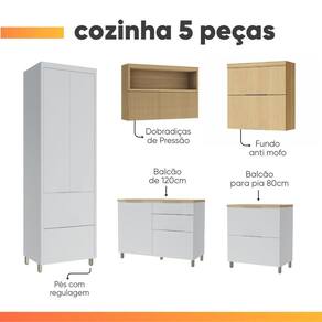 O armário de cozinha completa Mariah oferece praticidade, resistência e um design moderno para transformar seu ambiente. Sua estrutura 100% em MDF garante durabilidade superior. As portas de bater contam com dobradiças Slow motion, proporcionando fechamento suave e silencioso, enquanto as portas basculantes possuem pistão a gás, facilitando o manuseio no dia a dia. Para uma organização impecável, o conjunto inclui uma gaveta com porta temperos e organizador de talheres, equipadas com corrediças telescópicas de 3 estágios, que oferecem abertura total e maior estabilidade. O armário possui amplas prateleiras, ideais para otimizar o armazenamento de utensílios, mantimentos e aparelhos domésticos. Os tampos dos balcões possuem adaptação para pia e cooktop, trazendo versatilidade para diferentes projetos. Para finalizar, os pés reguláveis asseguram nivelamento perfeito e facilitando a limpeza. A escolha perfeita e essencial para transformar sua cozinha.