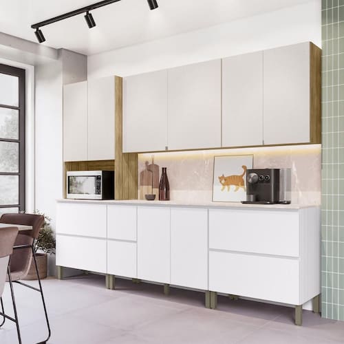 Armário de Cozinha Completa 11 Portas 4 Gavetas com Balcão Art - Branco