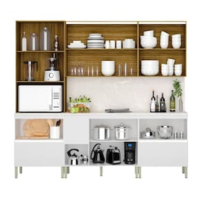 - Itens Inclusos: 1 Paneleiro, 1 Balcão de cozinha 0,80m, Tampo Com Painel, 1 Armário Aéreo 0,80m, 1 Balcão de cozinha 1,20m, 1 Armário Aéreo 1,20m, 1 Manual de montagem, 1 Kit Parafusos