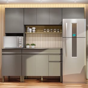 Conheça Cozinha Madrid 1.2 que une praticidade e estilo. Fabricada em MDP de 15 mm, com nove portas, uma gaveta e prateleiras internas, o móvel também conta com passa-fios no paneleiro e dobradiças e corrediças telescópicas 100% metálicas. Possui pés reguláveis em plástico resistente e acabamento em pintura com textura sensível ao toque, além de secagem com luzes UV para maior durabilidade.