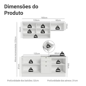 - 52 cm de profundidade nos balcões e 31cm nos aéreos