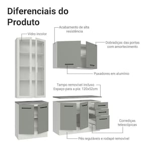 Nome do Simples no Fornecedor: Armário de Cozinha Completa 190cm com Cristaleira Branco/Cinza Agata Madesa 01