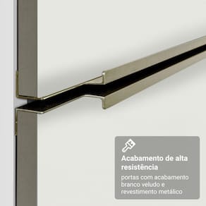 E para completar, o acabamento da estrutura é branco e o das portas e frentes é na coloração branco veludo.