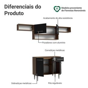Entre os diferenciais estão o acabamento de alta resistência, que garante maior durabilidade, os puxadores em alumínio, além das dobradiças e corrediças metálicas, que proporcionam mais firmeza no uso. Os pés reguláveis completam o conjunto, garantindo mais estabilidade e facilitando a limpeza do ambiente.