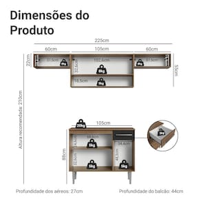 - 44 cm de profundidade no balcão e 27 cm nos aéreos
