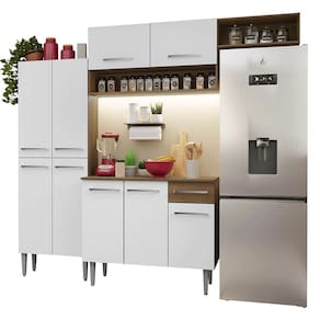 O acabamento em tom amadeirado Rustic e Branco combina com diversos estilos de decoração. Essa composição conta com módulos que oferecem praticidade para o preparo das refeições e mais espaço para manter tudo sempre organizado.