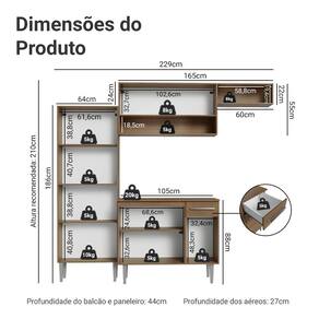 - 44 cm de profundidade no balcão e paneleiro e 27 cm nos aéreos
