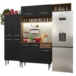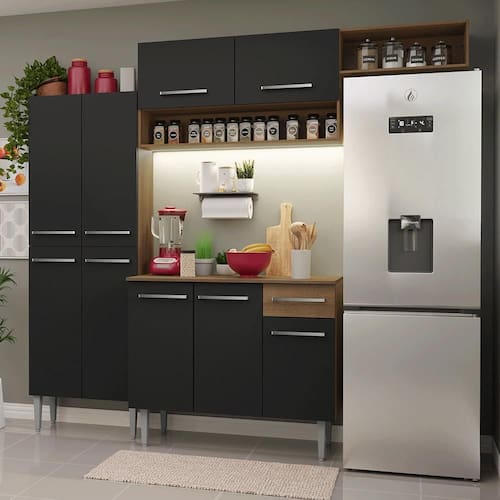 Com acabamento em tom amadeirado Rustic e Preto, traz mais personalidade à cozinha. Essa composição conta com módulos que oferecem praticidade para o preparo das refeições e mais espaço para manter tudo sempre organizado.