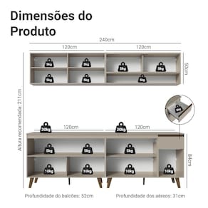 - 52 cm de profundidade nos balcões e 31 cm nos aéreos