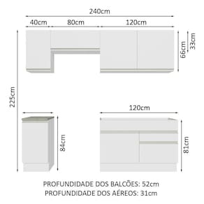 - 52 cm de profundidade nos balcões e 31 cm nos aéreos