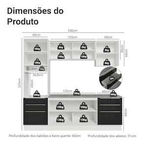 COR: Preto | Garantia: 3 meses contra de fabricação | Dimensões - Altura: 225 cm | Dimensões - Largura: 240 cm | Dimensões - Profundidade: 60 cm | Produto: Cozinha Completa | Marca: Madesa | Peso aproximado: 189 kg | Material: MDP | Estado de Origem: RS | Conteúdo da embalagem: 1 Cozinha Completa | Material para Filtro: MDP | Instruções/Cuidados: Utilize um pano limpo, levemente umedecido e seque em seguida a superfície. Não usar produtos químicos ou abrasivos para a limpeza. Recomendamos polir seu móvel com lustra-móveis duas a três vezes por ano. | Produto precisa de Montagem?: Sim | Inclui tampo: Sim | Peso Produto Com Embalagem (Kg): 203,3 | Altura do Produto com Embalagem (cm): 97,3 | Largura Produto Com Embalagem (cm): 66 | Comprimento Produto Com Embalagem (cm): 214,3 | Descrição do Tamanho: 225 cm x 240 cm x 60 cm | Nome do Simples no Fornecedor: Armário de Cozinha Completa 240cm Branco/Preto Lux Madesa 08 | Fabricante: Madesa | do Fabricante: | RBN: Casa/Móveis/Móveis de Cozinha | Quantidade de Gavetas: 6 | Tipo de Pé: Regulavel | Cômodo Indicado: Cozinhas | Quantidade de portas: 6 | Quantidade de caixas de embalagem: 14 | Bullet Point 0: Dimensões: 225 cm altura x 240 cm largura x 60 cm profundidade | Bullet Point 1: As portas e gavetas que recebem um vidro preto aplicado, detalhe que traz muita beleza ao ambiente | Bullet Point 2: Com ótimo espaço interno, possui profundidade de cozinha planejada com 60 cm | Bullet Point 3: Possui acabamento de alta resistência, conservando a beleza do móvel por muito mais tempo | É Frágil: Não | Quantidade de Itens: 1 | Certificação de teste externa: Sim | Modelo: GRLX24000873 | Componentes incluídos: Portas | Precisa de baterias ou pilhas: Não | da peça: GRLX24000873 | Tipos de Móveis de Cozinha: Cozinha Completa | Preço sugerido sem impostos: 3599,99 | Cor: Branco/Preto