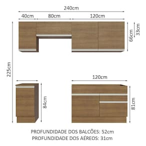 - 52 cm de profundidade nos balcões e 31 cm nos aéreos