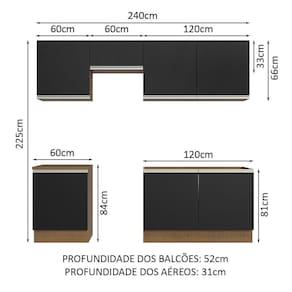 Para completar, o acabamento da estrutura é no padrão amadeirado Rustic e o das portas e frentes é preto. Feito em Pintura Poliéster ecológica, que consiste na aplicação de 7 camadas de proteção resistentes a álcool, água e calor.