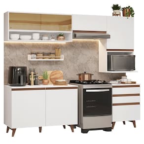 - 31 cm de profundidade nos aéreos, 52 cm nos balcões e 45 cm no nicho para micro-ondas