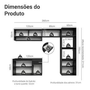 - 31 cm de profundidade nos aéreos