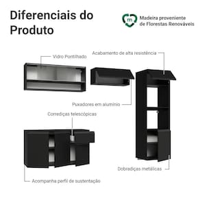 Com acabamento preto, que valoriza o ambiente com um visual marcante e contemporâneo. Os puxadores em cinza titanium complementam o conjunto com elegância.
