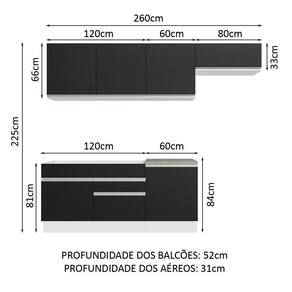 - 52 cm de profundidade nos balcões e 31 cm nos aéreos