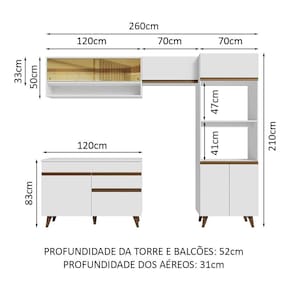 - 52 cm de profundidade no balcão e na torre e 31 cm nos aéreos