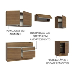 Fabricado com foco na durabilidade e na qualidade, esse móvel apresenta puxadores em alumínio, portas com fechamento suave, pés ajustáveis em PVC e rodapé em MDP, que pode ser removido sem dificuldade.