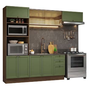 Cor: Verde | Garantia: 3 meses contra defeitos de fabricação | Dimensões - Altura: 225 cm | Dimensões - Largura: 270 cm | Dimensões - Profundidade: 52 cm | Produto: Cozinha Completa | Marca: Madesa | Peso aproximado: 126 kg | Material: MDP | Estado de Origem: RS | Conteúdo da embalagem: Uma Cozinha Completa | Material para Filtro: MDP | Instruções/Cuidados: Utilize um pano limpo, levemente umedecido e seque em seguida a superfície. Não usar produtos químicos ou abrasivos para a limpeza. Recomendamos polir seu móvel com lustra-móveis duas a três vezes por ano. | Produto precisa de Montagem?: Sim | Inclui tampo: Não | Peso Produto Com Embalagem (Kg): 126,31 | Altura do Produto com Embalagem (cm): 65 | Largura Produto Com Embalagem (cm): 53 | Comprimento Produto Com Embalagem (cm): 228,2 | Descrição do Tamanho: 225 cm x 270 cm x 52cm | Nome do Simples no Fornecedor: Armário de Cozinha Completa 270 cm Rustic/Verde Vik Madesa 04 | Fabricante: Madesa | RBN: Casa/Móveis/Móveis para Escritório em Casa | Quantidade de Gavetas: 3 | Quantidade de portas: 8 | Tipo de móveis de cozinha: Cozinha Completa | Materiais do corpo: MDP | Quantidade de caixas de embalagem: 12 | Bullet Point 0: Dimensões: 225 cm altura x 270 cm largura x 52 cm profundidade | Bullet Point 1: A combinação perfeita entre design clássico e elementos modernos | Bullet Point 2: Inspiração no estilo americano, frentes com acabamento chanfrado e textura fosca suave ao toque | Bullet Point 3: Puxadores ponto em ouro envelhecido e portas com fechamento suave | É Frágil: Não | Quantidade de Itens: 1 | Certificação de teste externa: Sim | Modelo: GRVK270004M3 | Componentes incluídos: Portas | Precisa de baterias ou pilhas: Não | Número da peça: GRVK270004M3 | Preço sugerido sem impostos: 2799.99 | Peso do item (item_weight): value=126.31;unit=kilograms | Dimensões do item P x L x A (item_depth_width_height): depth#value=52;depth#unit=centimeters;height#value=225;height#unit=centimeters;width#value=270;width#unit=centimeters | Requer montagem (REQUIRES_ASSEMBLY): Sim | Inclui manual de montagem (INCLUDES_ASSEMBLY_MANUAL): Sim Cor: Rustic/Verde