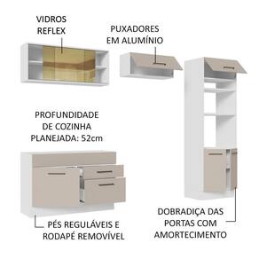 Para completar, os pés são reguláveis em PVC e o rodapé é removível em MDP, com encaixe fácil para retirar na hora da limpeza.