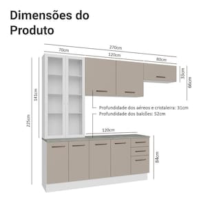 COR: Crema | Garantia: 3 meses contra de fabricação | Dimensões - Altura: 225 cm | Dimensões - Largura: 270 cm | Dimensões - Profundidade: 52 cm | Peso aproximado: 150 kg | Produto: Cozinha Completa | Marca: Madesa | Material: MDP | RBN: Casa/Móveis/Móveis de Cozinha/Móveis de Cozinha Completa | Conteúdo da embalagem: Uma Cozinha Completa | Instruções/Cuidados: Utilize um pano limpo, levemente umedecido e seque em seguida a superfície. Não usar produtos químicos ou abrasivos para a limpeza. Recomendamos polir seu móvel com lustra-móveis duas a três vezes por ano. | Altura do Produto com Embalagem (cm): 77,6 | Largura Produto Com Embalagem (cm): 60,3 | Comprimento Produto Com Embalagem (cm): 158,2 | Peso Produto Com Embalagem (Kg): 149,14 | Produto precisa de Montagem?: Sim | Descrição do Tamanho: 225 cm x 270 cm x 52 cm | Estado de Origem: RS | Material para Filtro: MDP | Cômodo Indicado: Cozinhas | Nome do Simples no Fornecedor: Armário de Cozinha Completa 270cm Branco/Crema Agata Madesa 11 | do Fabricante: | Fabricante: Madesa | Quantidade de caixas de embalagem: 13 | Quantidade de portas: 9 | Quantidade de gavetas: 3 | Tipo de móveis de cozinha: Cozinha Completa | Inclui tampo: Sim | Tipo de Pé: Regulável | Materiais do corpo: MDP | Modelo: GRAG2700115L | É Frágil: Não | Quantidade de Itens: 1 | da peça: GRAG2700115L | Precisa de baterias ou pilhas: Não | Certificação de teste externa: Sim | Inclui manual de montagem: Sim | Componentes incluídos: Portas | Cor: Branco/Crema