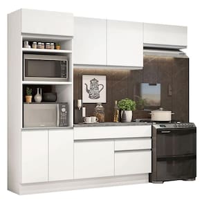 Por se tratar de uma cozinha totalmente modulada, você pode organizar as peças conforme a necessidade do seu ambiente. Assim, se torna praticamente uma cozinha planejada para a sua casa.