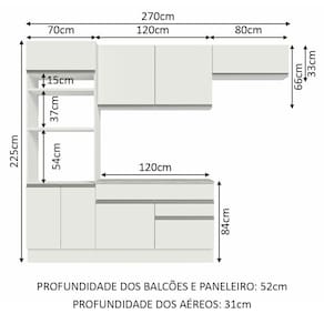 - 52 cm de profundidade no balcão e na torre e 31 cm nos aéreos