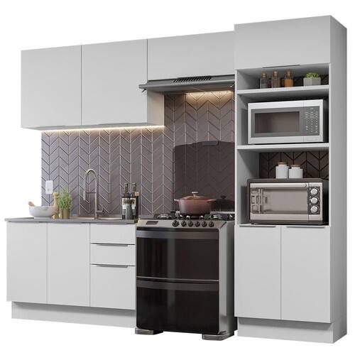 Este modelo oferece espaço para armazenar de tudo: forno, micro-ondas, garrafas, louças, eletros, panos e qualquer outra coisa que você possa imaginar. É a escolha ideal para deixar sua cozinha extremamente organizada e funcional.